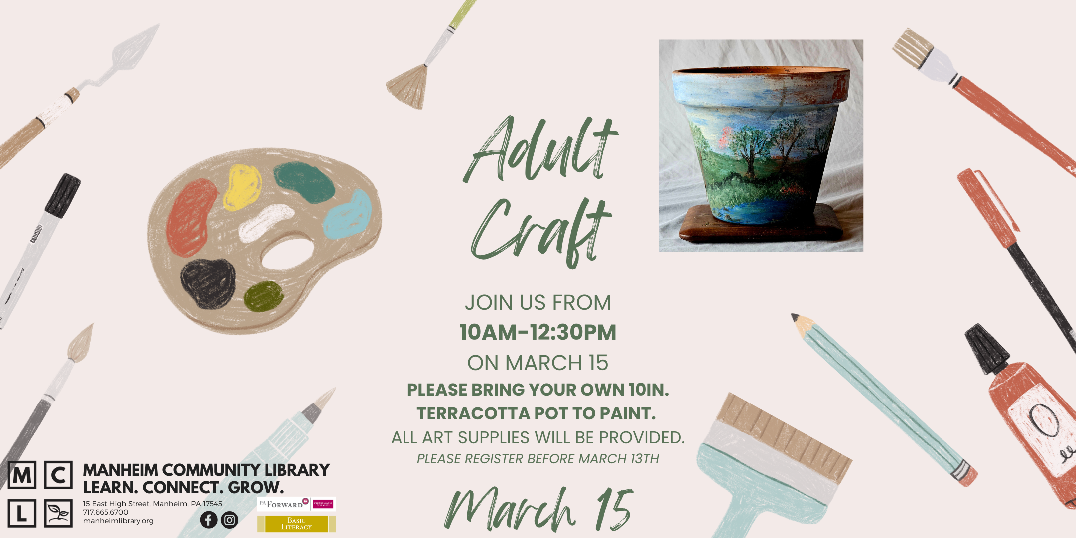 We look forward to hosting you for this special edition and long- awaited edition of our Adult Craft program!